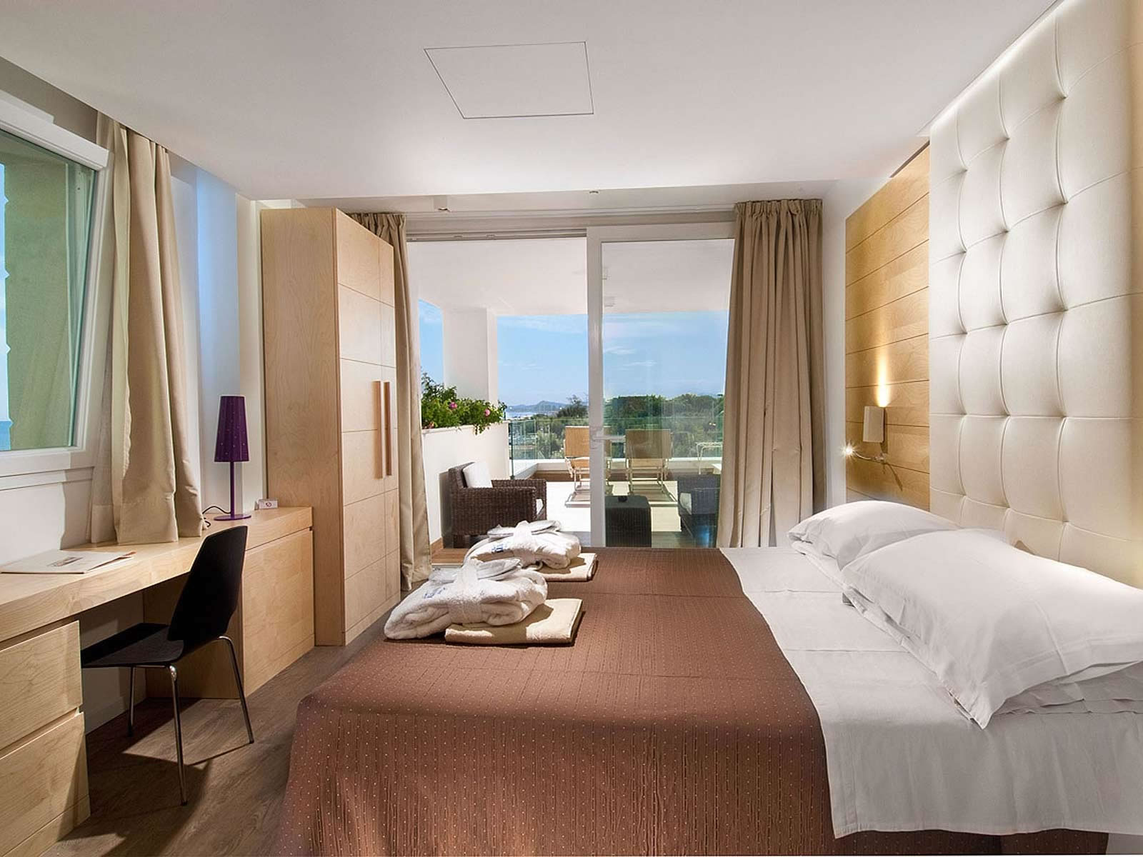 Pièces élégantes et raffinées. La chambre a une vue sans pareil sur toute la côte. Les suites tout confort peuvent accueillir jusqu’à 5 personnes, 30 m2 avec plus de 20 m2 de terrasse.